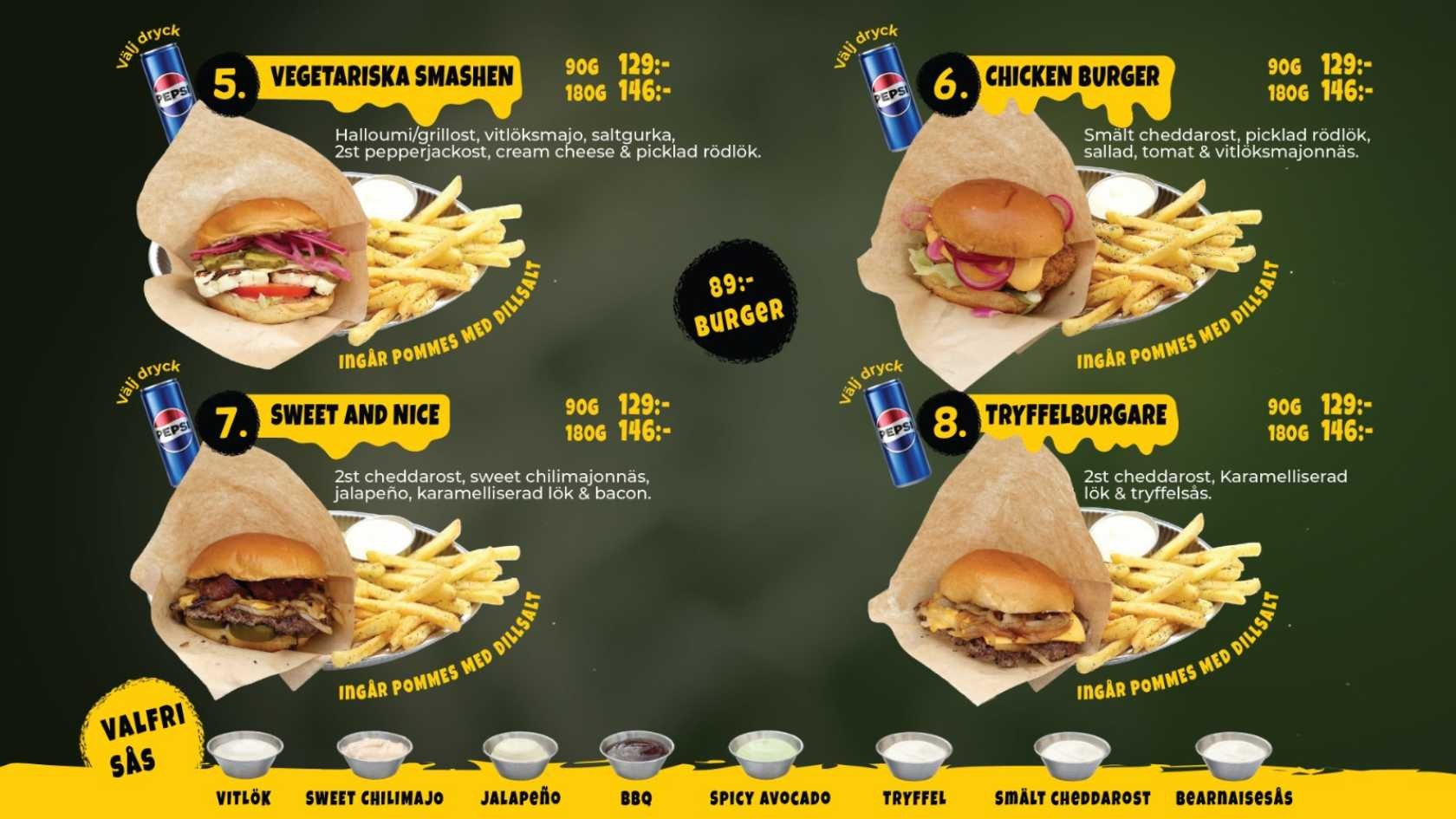 Vi serverar förstklassiga Smashburgare av internationell toppklass – saftiga, smakrika och tillagade med perfektion för den ultimata burgarupplevelsen.