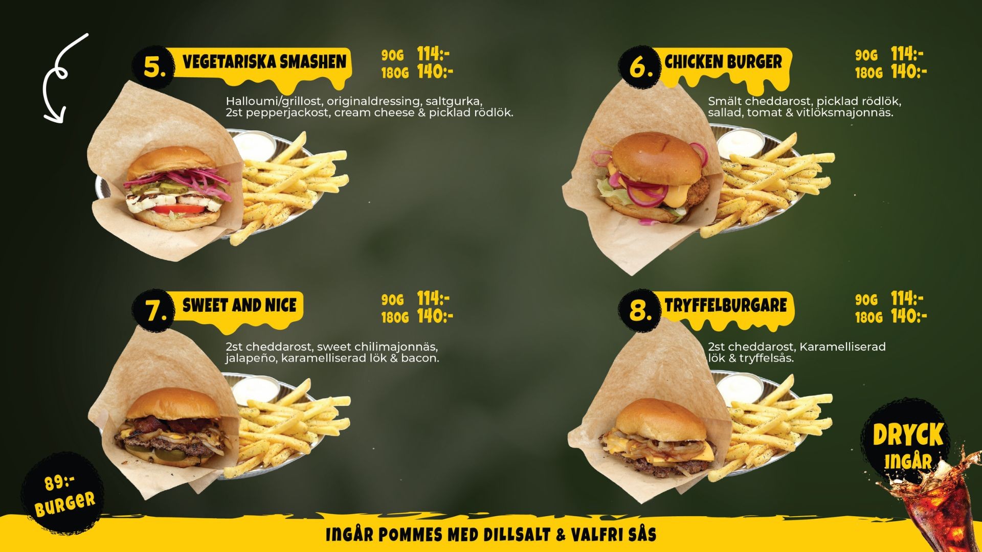 Vi serverar förstklassiga Smashburgare av internationell toppklass – saftiga, smakrika och tillagade med perfektion för den ultimata burgarupplevelsen.